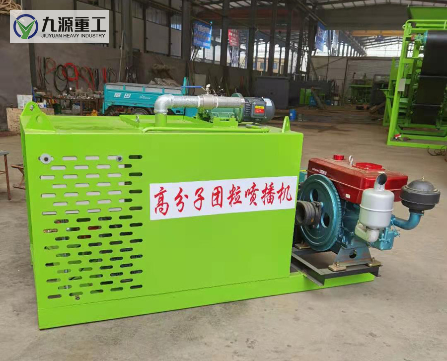 高分子團粒結構噴播機是應用于邊坡綠化客土噴播的專業設備,通過本設備將土壤基質、高分子A、B型材料、綠化草籽、保水劑、黏合劑、肥料等,在噴播機攪拌罐中與水混合成膠狀的漿液,用泥漿泵將其噴播于坡面上。由于漿液中含有保水材料、黏合材料、各種養分,在保證了植物生長所需的水和其它營養物質來源的同時有效防止雨水沖刷對噴播材料的破壞,故而植物能夠健康、迅速地成長。