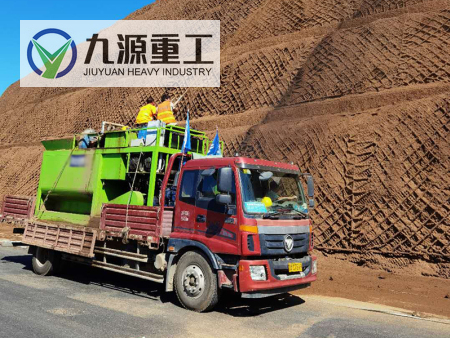 噴播機(jī)是應(yīng)用于邊坡綠化的專業(yè)設(shè)備,通過本設(shè)備將土壤基質(zhì)、綠化草籽、保水劑、黏合劑、肥料等,在噴播機(jī)攪拌罐中與水混合成膠狀的漿液,用泥漿泵將其噴播于坡面上。由于漿液中含有保水材料、黏合材料、各種養(yǎng)分,在保證了植物生長所需的水和其它營養(yǎng)物質(zhì)來源的同時(shí)有效防止雨水沖刷對噴播材料的破壞,故而植物能夠健康、迅速地成長。
